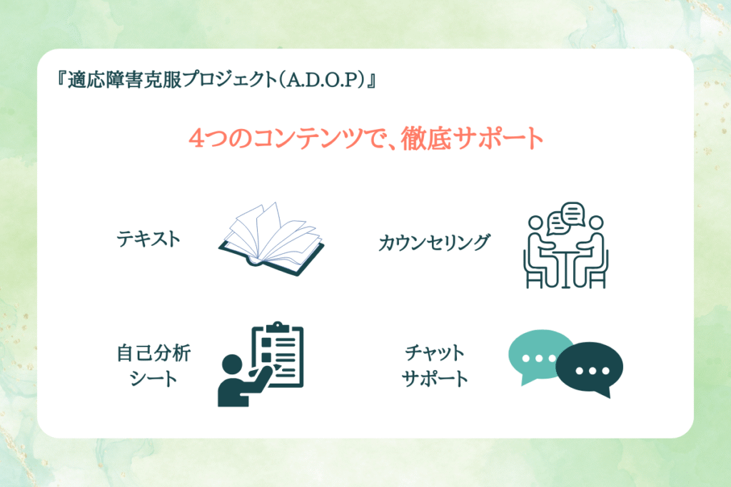 この返金保証を悪用すればあなたはタダで“適応障害克服プロジェクト【A.D.O.P】”のすべてを手に入れることができます。しかし、そんなことをするような人はいないと信じているからこその保証です。これはあなたと私の信頼を形にした保証なのです。万が一ご返金させていただいた場合でも、お互いの関係性が悪くなるようなことはなくしたいと思います。